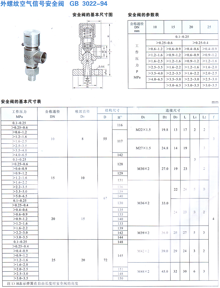 外螺紋空氣信號安全閥GB3022-94