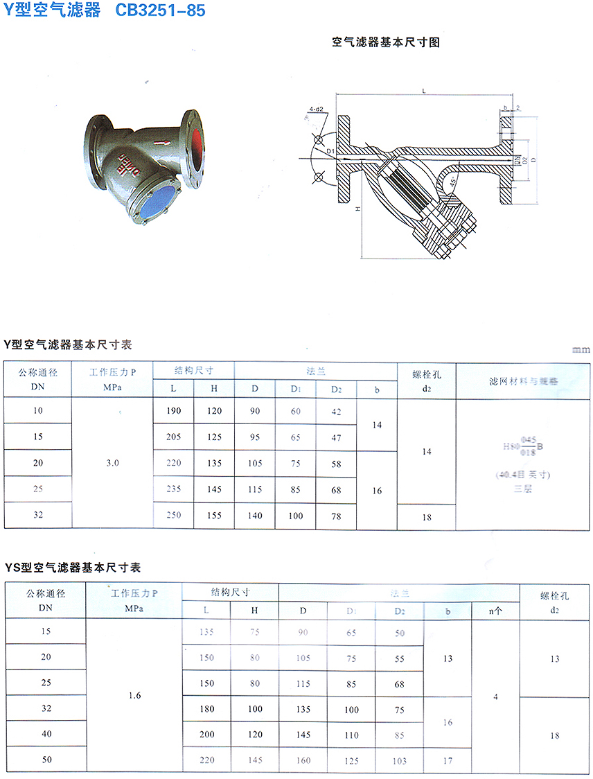 Y型空氣濾器CB3251-85