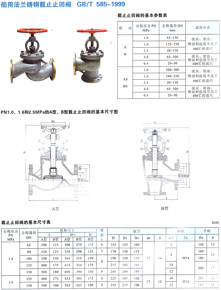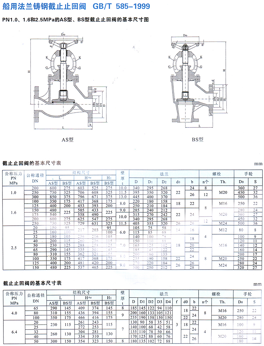 船用法蘭鑄鋼截止止回閥GB/T585-1999